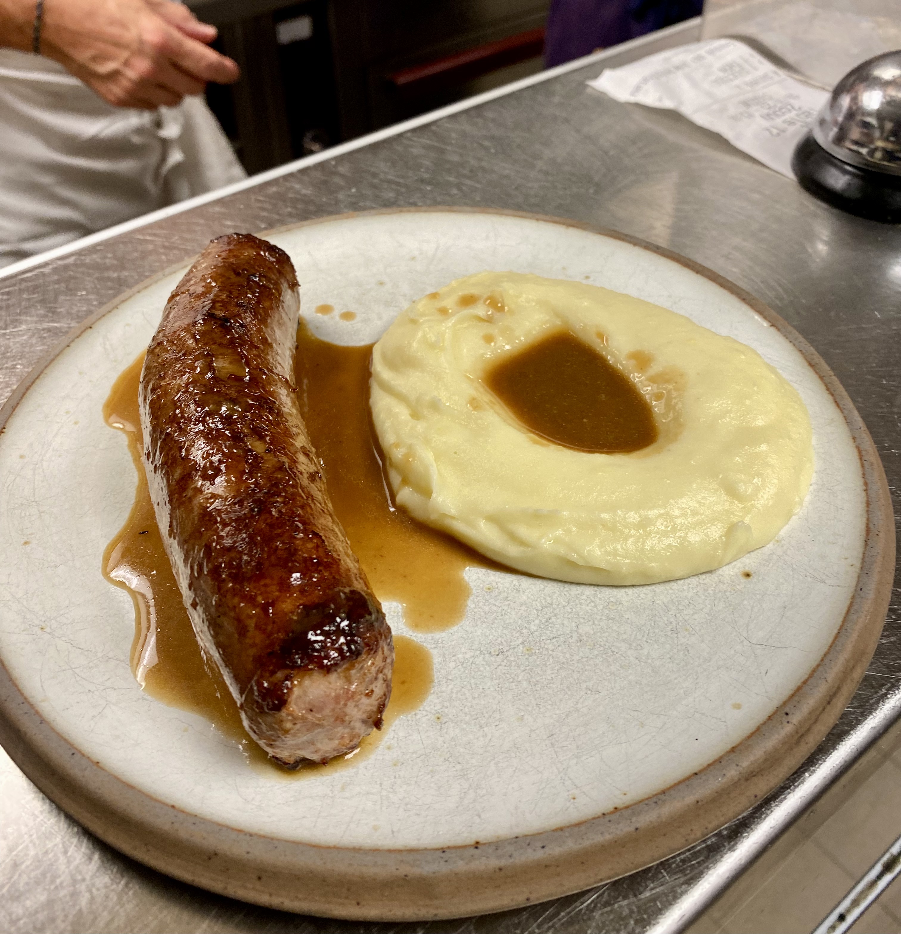 Saucisse au couteau de l’Aveyron, purée de pommes de terre